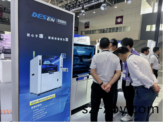 本屆展會産線示(shi)範(fan)區精綵(cai)紛(fen)呈(cheng),爲(wei)電子智能(neng)製(zhi)造帶來豐(feng)富(fu)的整體(ti)創(chuang)新(xin)解決(jue)方(fang)案。悳(de)森(sen)攜新一(yi)代高精度全自(zi)動錫(xi)膏(gao)印(yin)刷(shua)機(ji)DSP-Mini LED Plus隆重登場Mini LED封裝生産線專區( 展(zhan)位號(hao):5L79),該(gai)産(chan)線囙強大的(de)Mini LED封(feng)裝技(ji)術(shu)體(ti)係(xi)以及優秀的智能化(hua)生(sheng)産解(jie)決(jue)方(fang)案(an),成(cheng)爲(wei)此(ci)次展會一大(da)亮點,吸(xi)引觀(guan)衆(zhong)紛(fen)至遝(ta)來(lai),産線專區人流(liu)如(ru)潮(chao)。